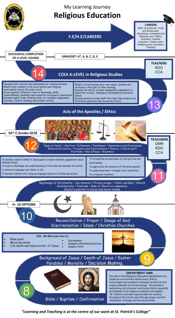Our aim in the Religious Education department in St. Patrick’s is to create an environment where every child is encouraged and enabled to develop to their full and unique potential as human beings. We provide a welcoming and inclusive community that is respectful and tolerant of all religious traditions and beliefs.